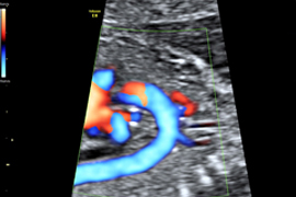 In der 20. Schwangerschaftswoche ist das kindliche Herz etwa so groß wie eine Himbeere – und trotzdem können wir bereits die Kammern und Herzklappen und die zu- und abführenden Blutgefäße darstellen!